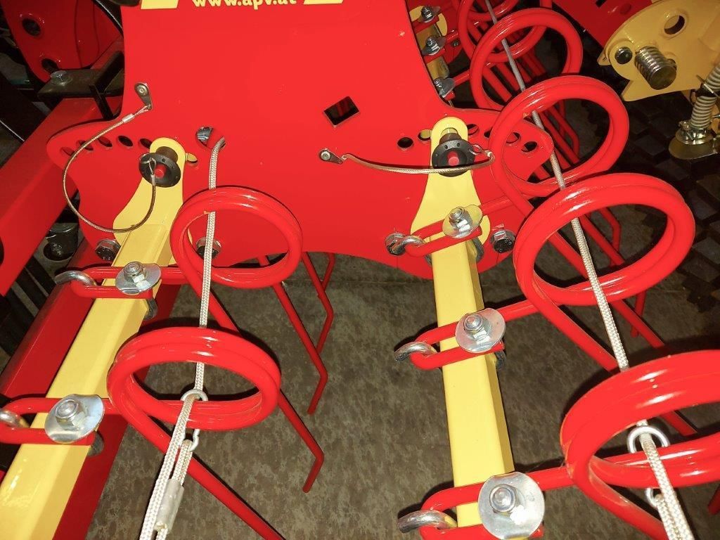 Striegel mit zwölf Millimetern Zinkendurchmesser samt Verlustsicherung: Die beiden Striegelreihen sind unabhängig voander an der Lochkulisse werkzeuglos in ihrer Aggressivität einstellbar. © Gottfried Hauer/LK Niederösterreich